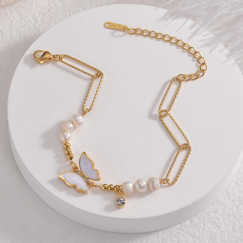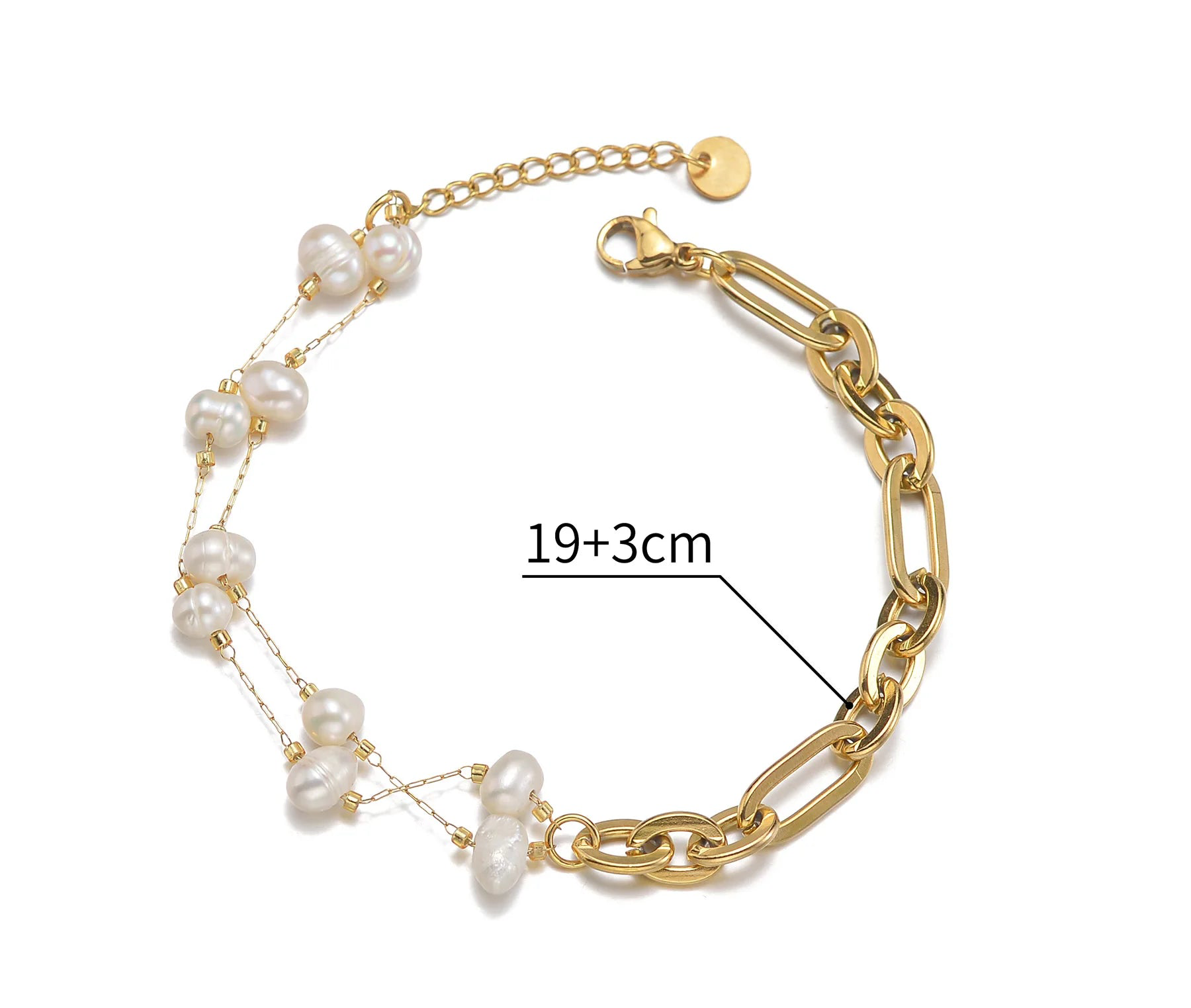 Braccialetto con perle irregolari e ciondolo in acciaio – Fascino vintage