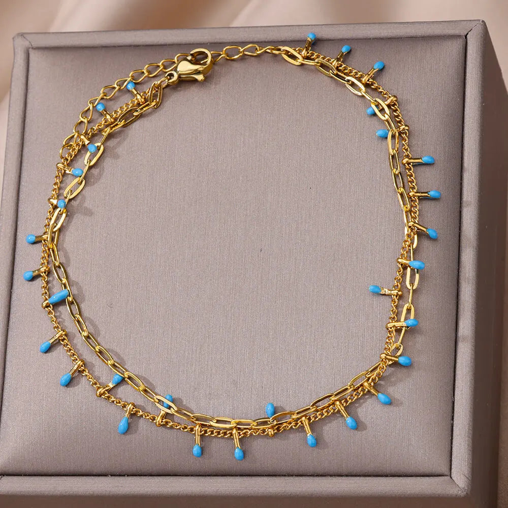Cavigliera “Onde Boho” – Catena con Perline e Ciondolo