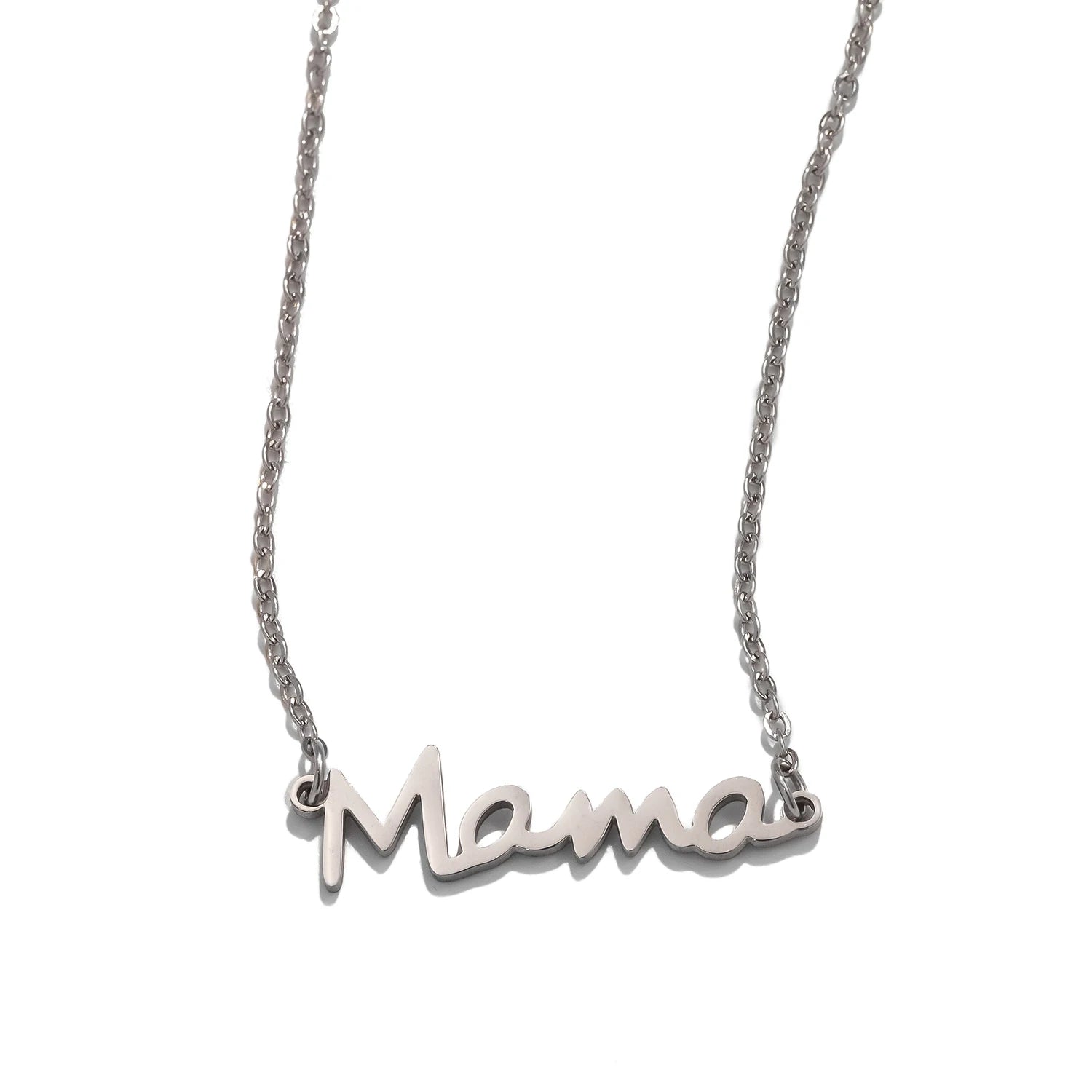 Una collana luminosa con ciondolo inciso “Mama”, pensata come simbolo d’amore eterno tra madre e figli.
