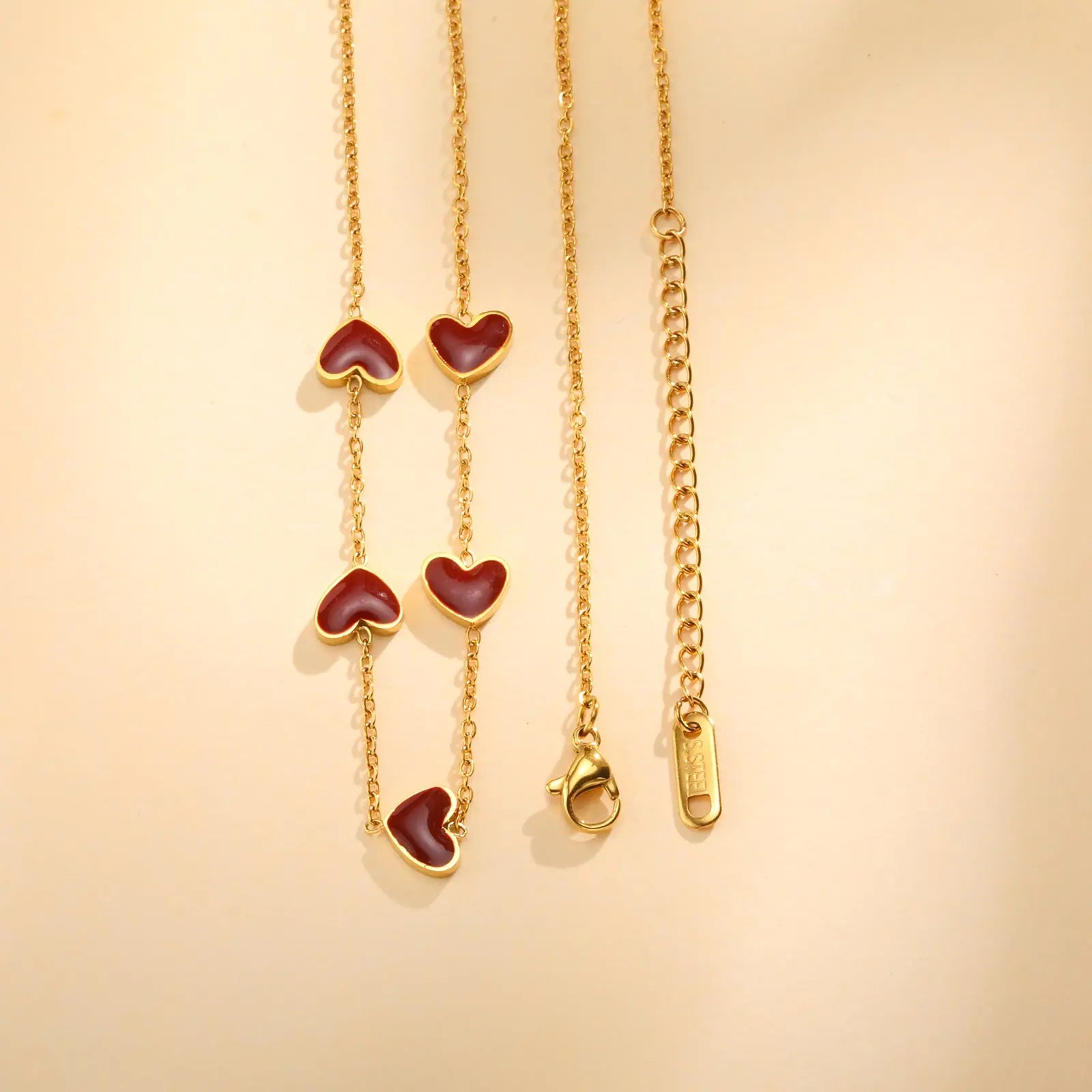 - Design: catena con cuori rossi smaltati