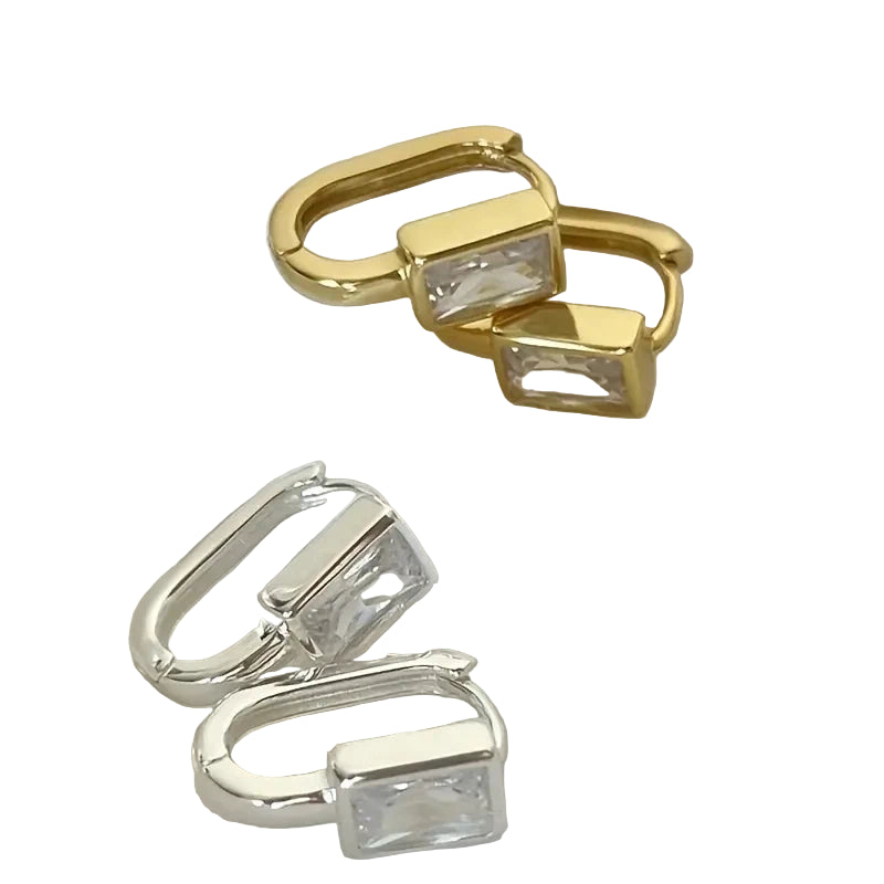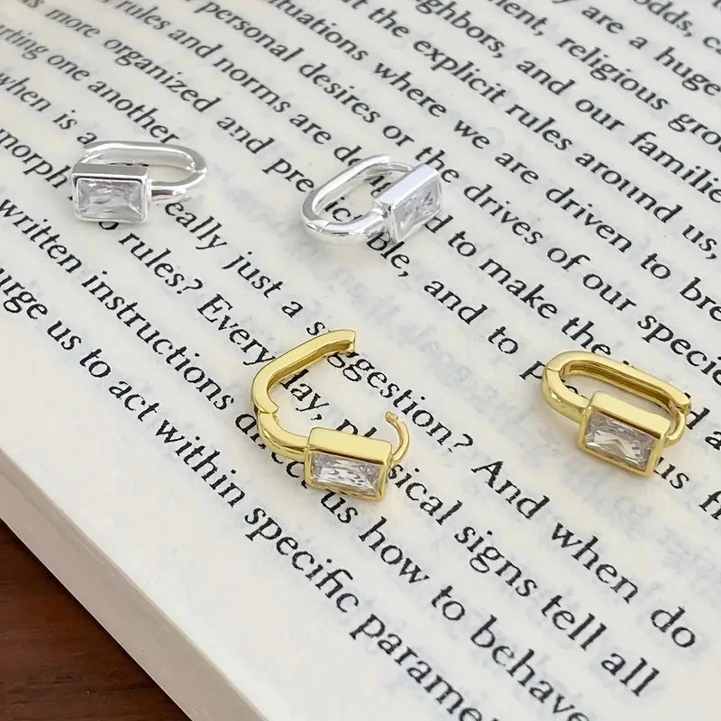 Orecchini a cerchio rettangolari impreziositi da zirconi cubici luminosi, disponibili nelle varianti argento e oro. Un design elegante e moderno che unisce forme geometriche e brillantezza, perfetto per aggiungere un tocco di temperamento raffinato a qualsiasi look. Ideali sia per occasioni speciali che per dare luce agli outfit di ogni giorno.