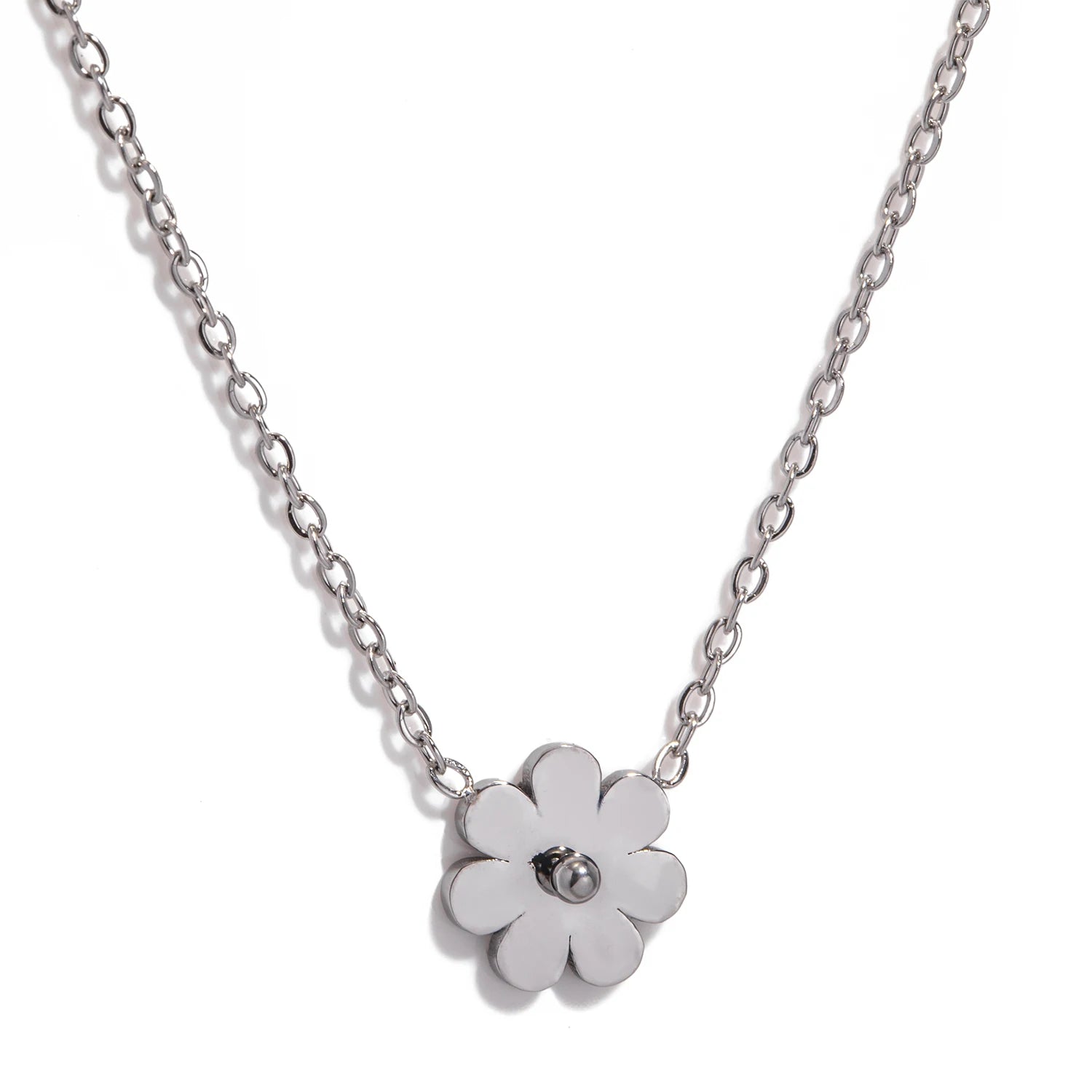 La Collana Fiore Liscio è realizzata in acciaio inossidabile di alta qualità, con un delicato pendente floreale dalle linee pulite e moderne.