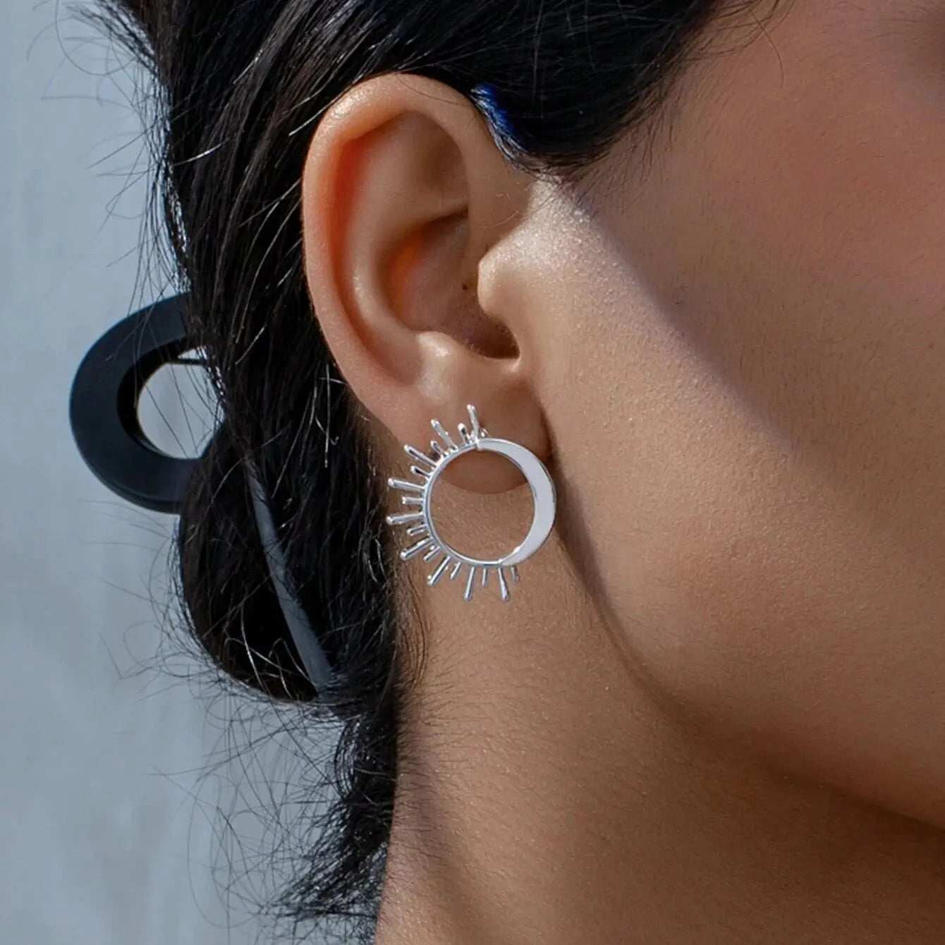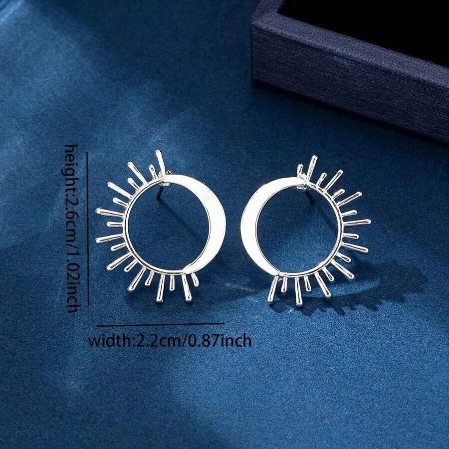 Piccoli ma dal carattere deciso, questi orecchini a bottone combinano la magia della luna con un design moderno e grintoso. Realizzati in metallo nei toni oro e argento, aggiungono un tocco punk-chic a qualsiasi outfit, dal casual quotidiano alle serate più audaci.
