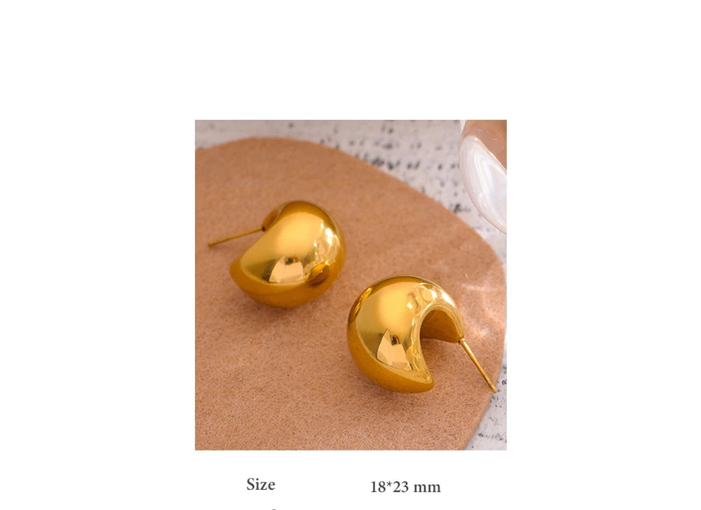 Aggiungi carattere e stile ai tuoi look con questi orecchini geometrici bold in acciaio inossidabile. La loro forma bombata e lucente regala un tocco moderno e deciso, perfetto per chi ama distinguersi con eleganza. Disponibili in finitura oro caldo o argento brillante, sono ideali sia per outfit quotidiani che per serate speciali.