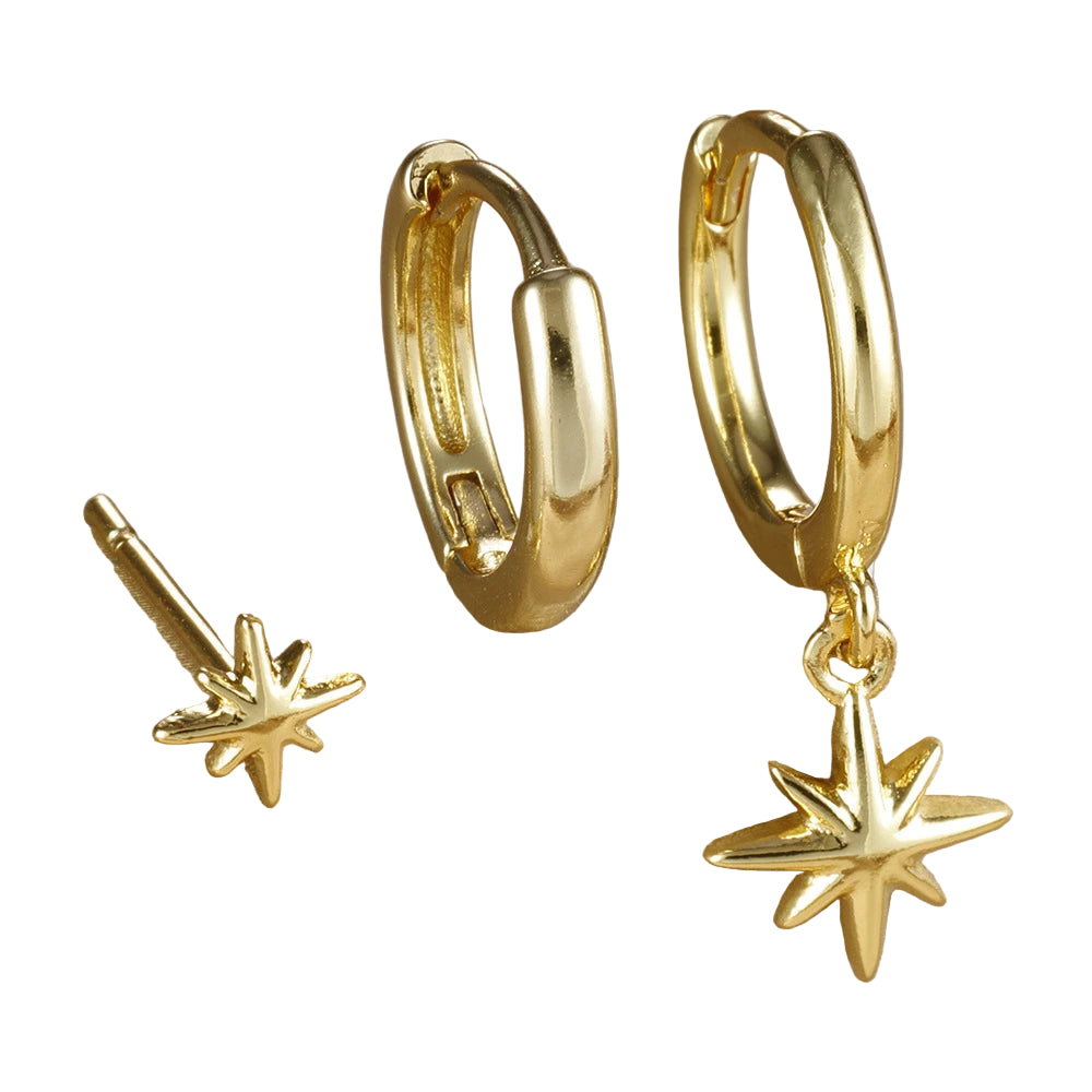 Set 3 Orecchini Pendenti Stella Rotonda