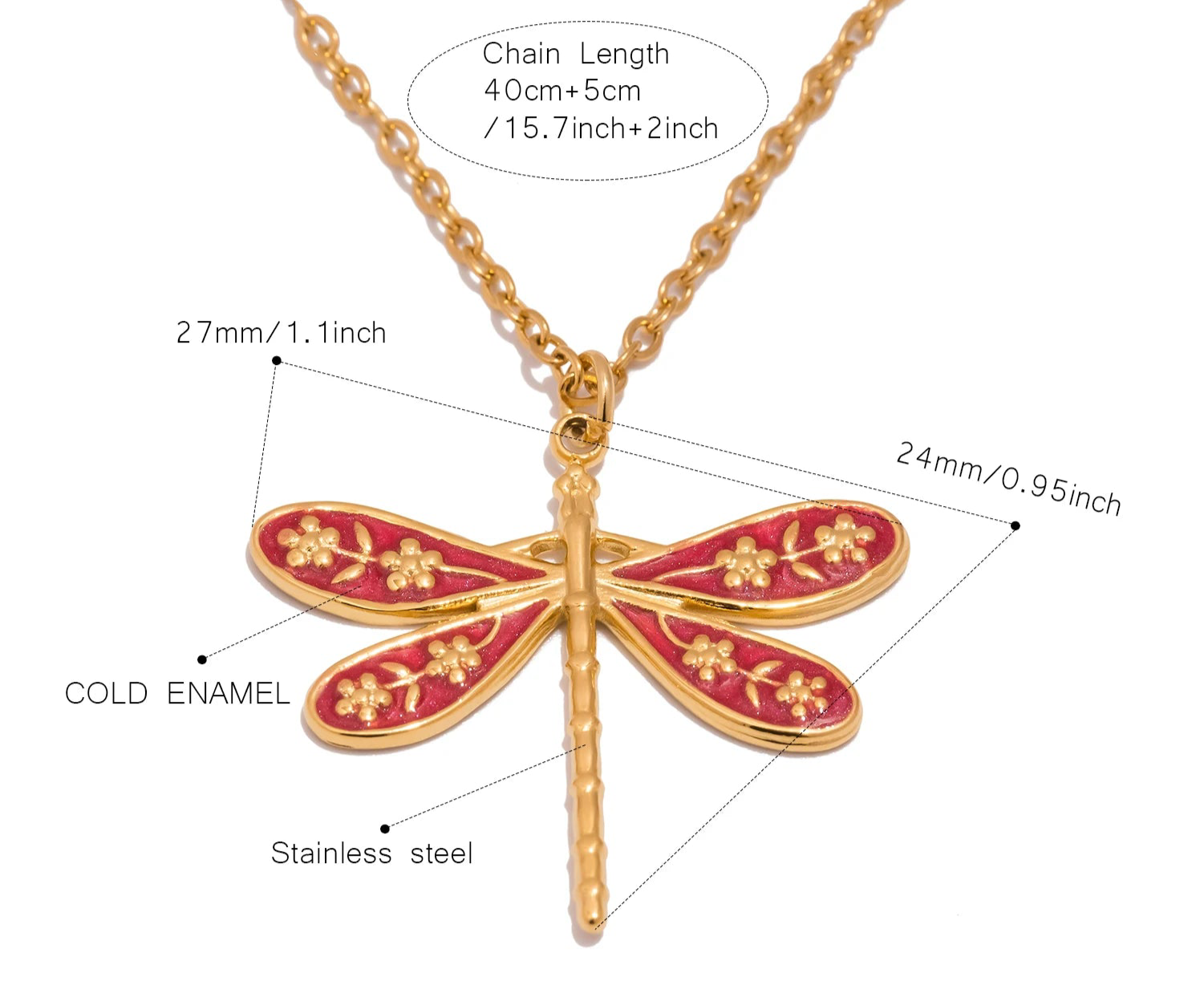 Realizzata in acciaio inossidabile antiruggine, è impreziosita da un ciondolo a forma di libellula smaltata a freddo, disponibile in tre varianti di colore: blu, viola o rossa.