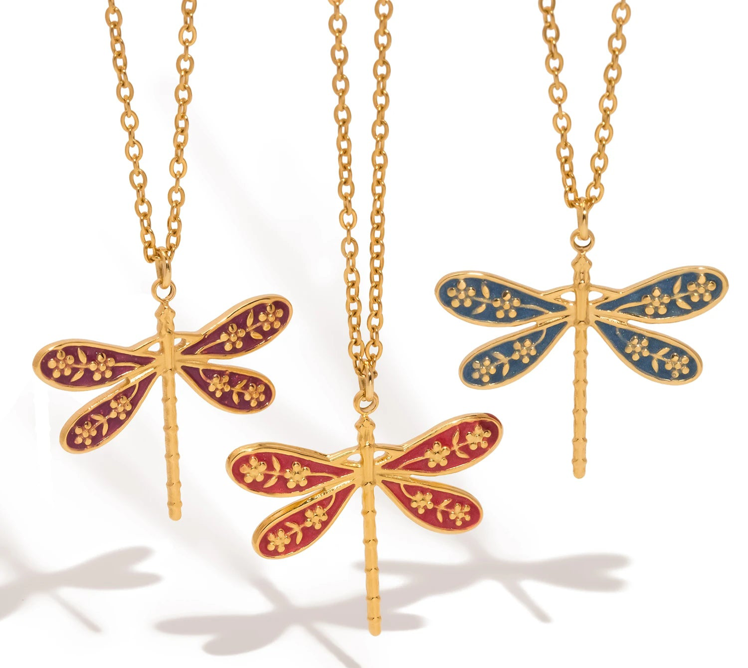 Collana con Ciondolo Libellula Colorata – Blu, Viola o Rossa