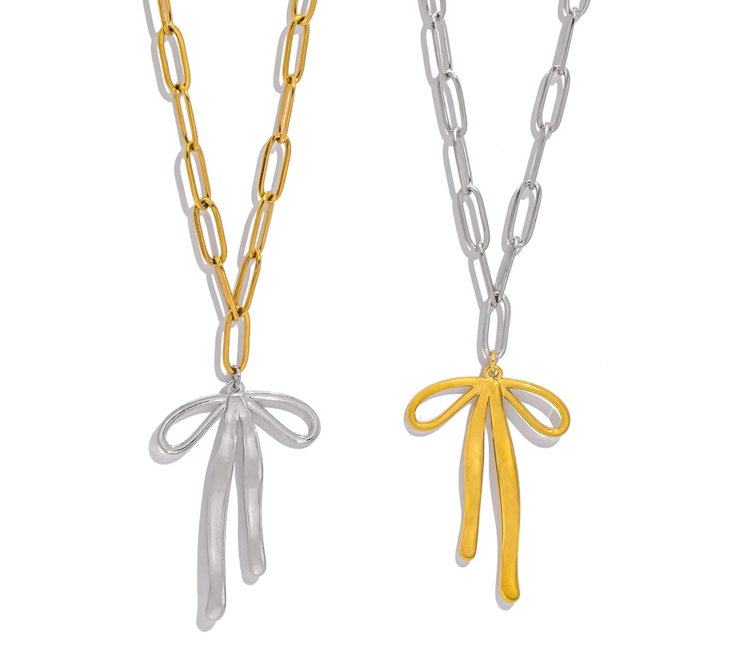 Collana Fiocco Vintage – Pendente in acciaio elegante, disponibile in 4 varianti