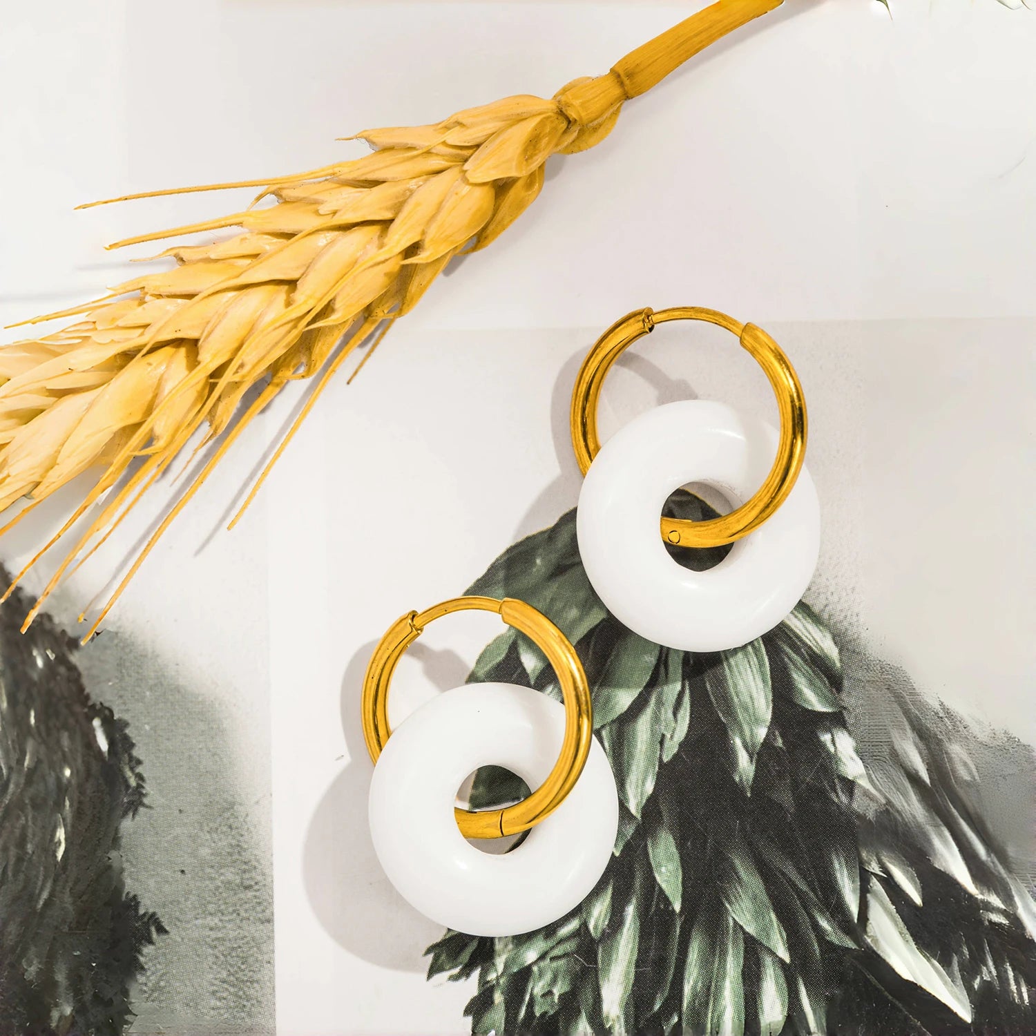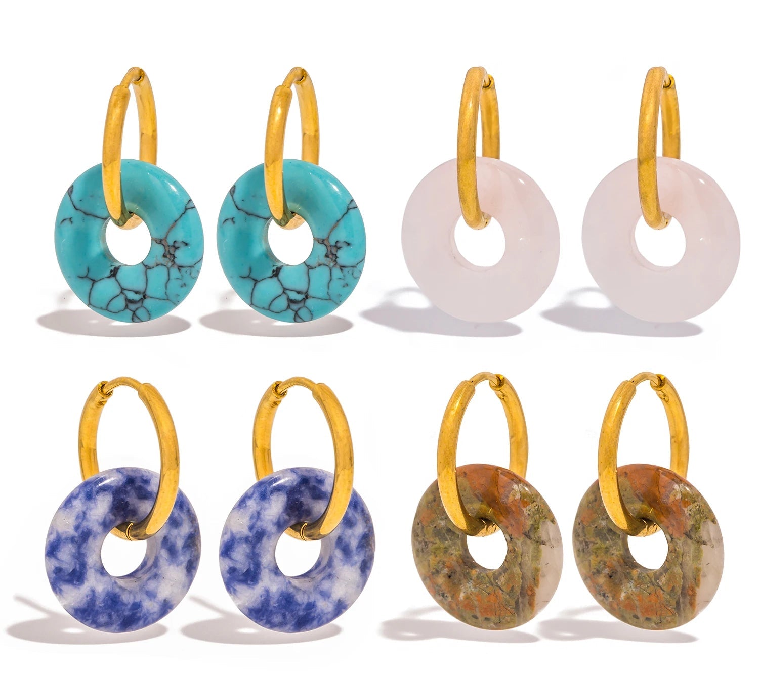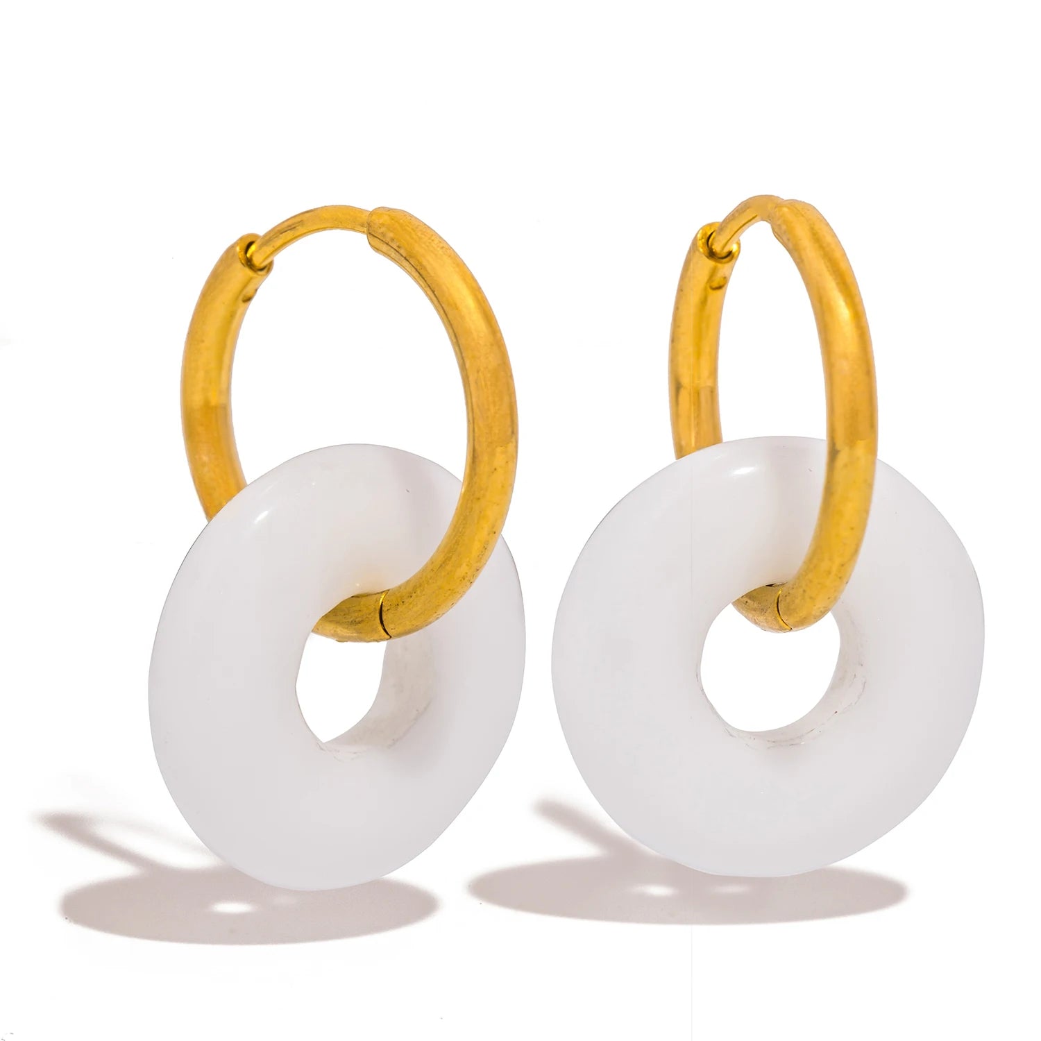 Eleganti orecchini a cerchio con ciondoli in agata naturale, disponibili in 5 varianti di colore, per adattarsi ad ogni stile e personalità.