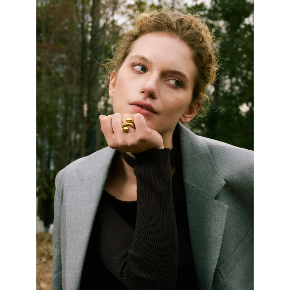 Anello Dorato Irregolare – Eleganza Scultorea in Acciaio