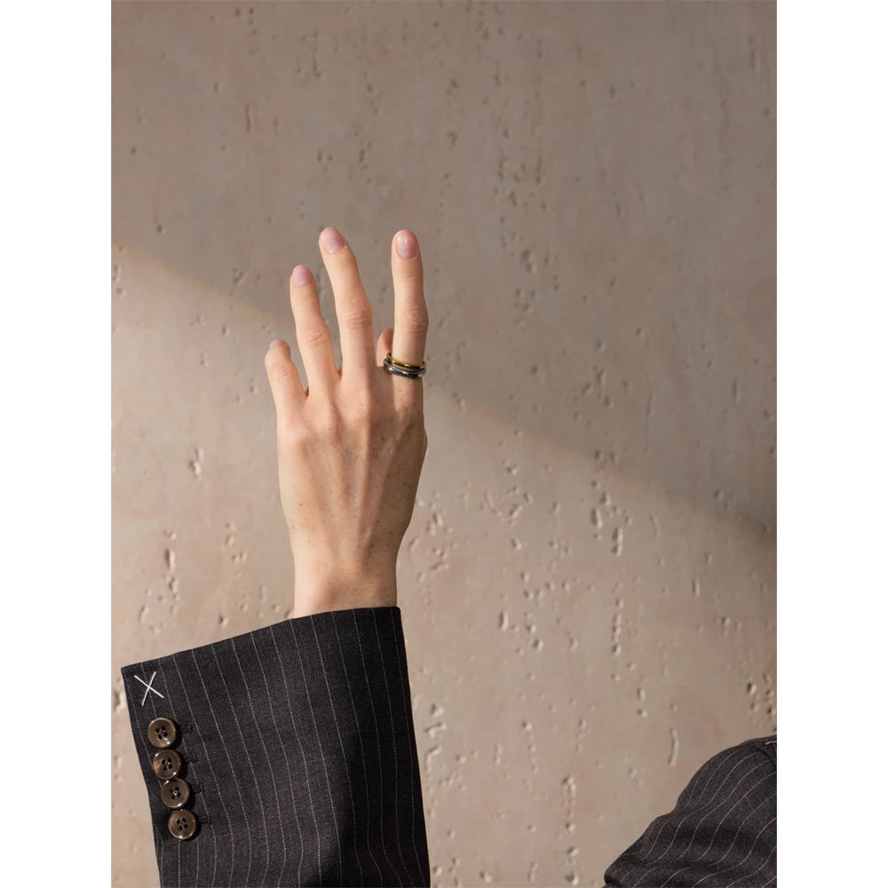 Un anello moderno e sofisticato dal design geometrico a doppio colore, che unisce la lucentezza dell’argento all’eleganza dell’oro. Realizzato in acciaio inossidabile di alta qualità, è resistente all’acqua e perfetto per un uso quotidiano.