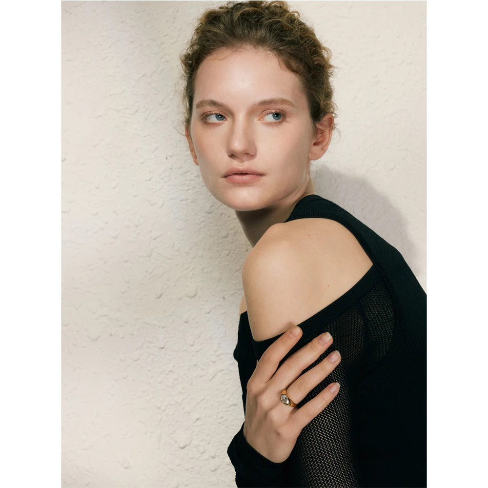 Anello Dorato Geometrico con Zircone a Goccia – Eleganza Raffinata da Donna