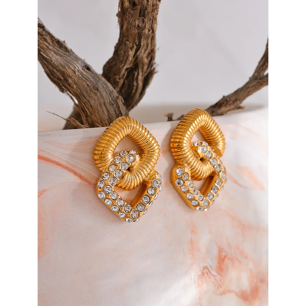 Raffinati e originali, questi orecchini geometrici a bottone combinano uno stile vintage con dettagli luminosi che catturano lo sguardo.