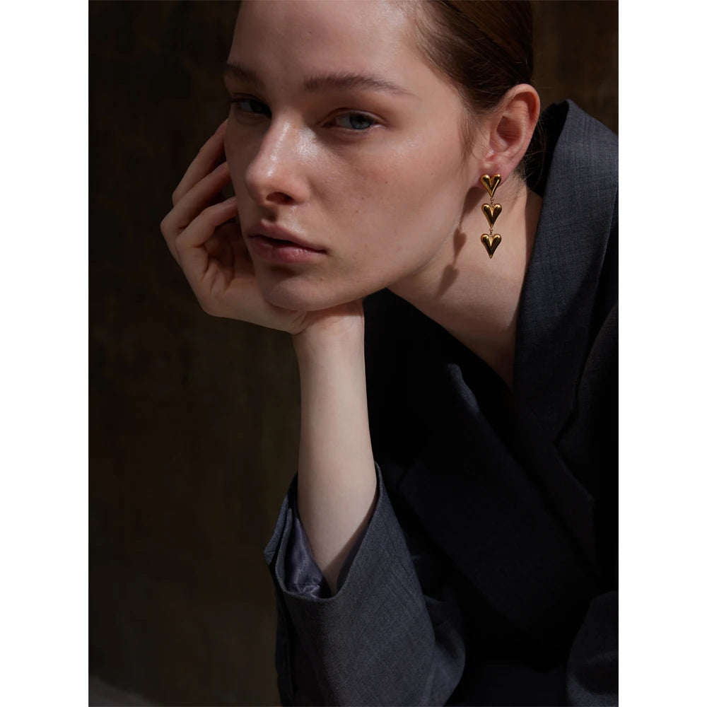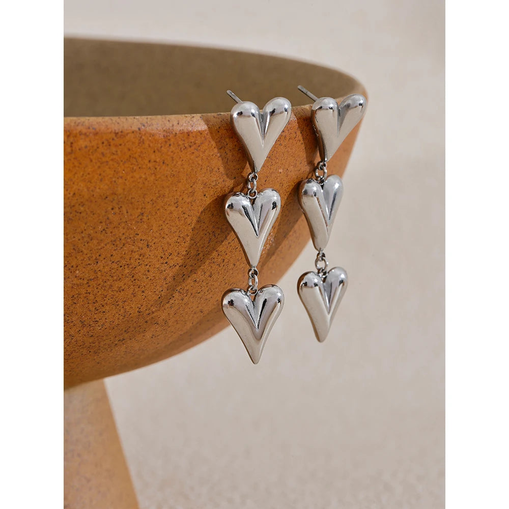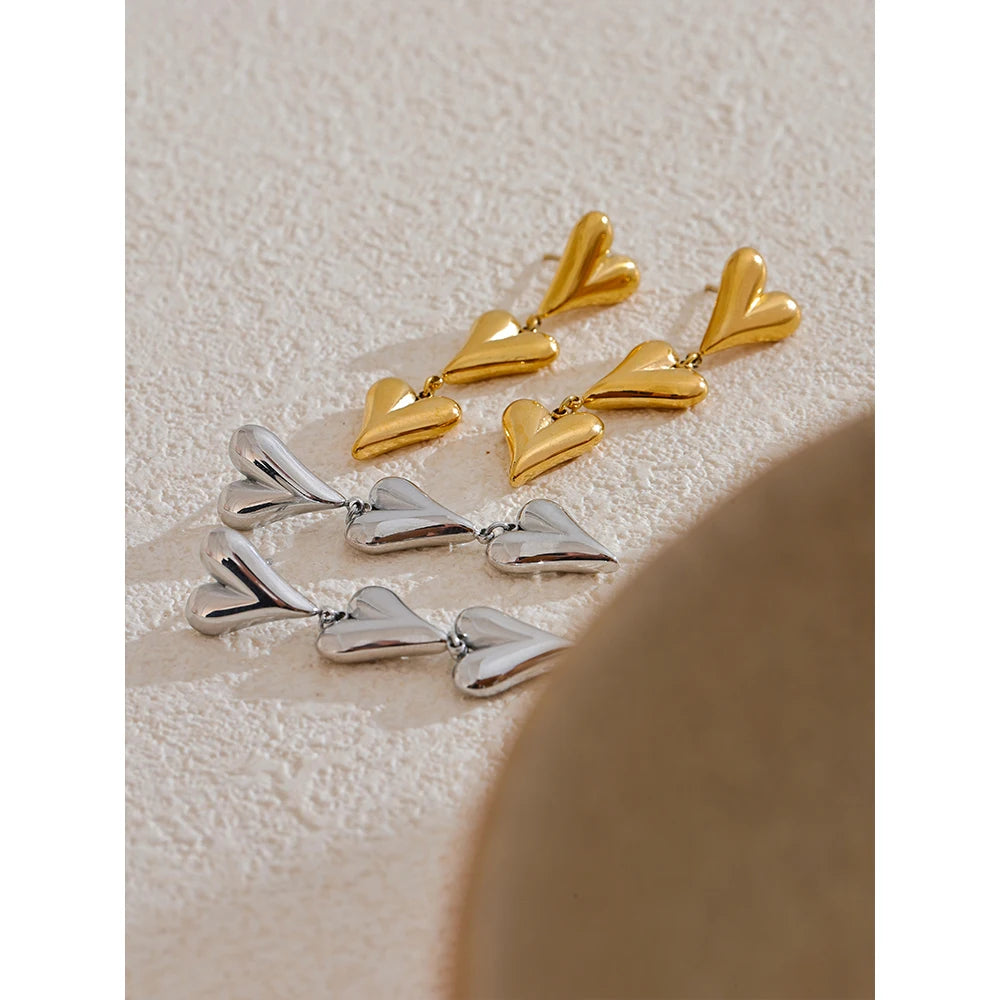 Orecchini Pendenti Cuore Triplo β Acciaio Inossidabile Oro o Argento