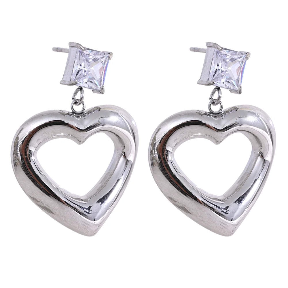 Orecchini Pendenti Cuore con Zirconi – Acciaio Inossidabile Oro o Platino