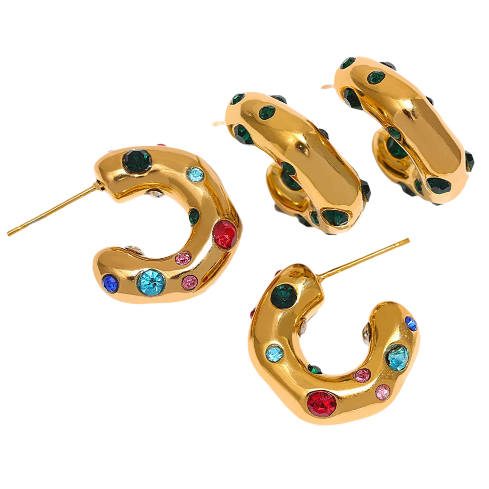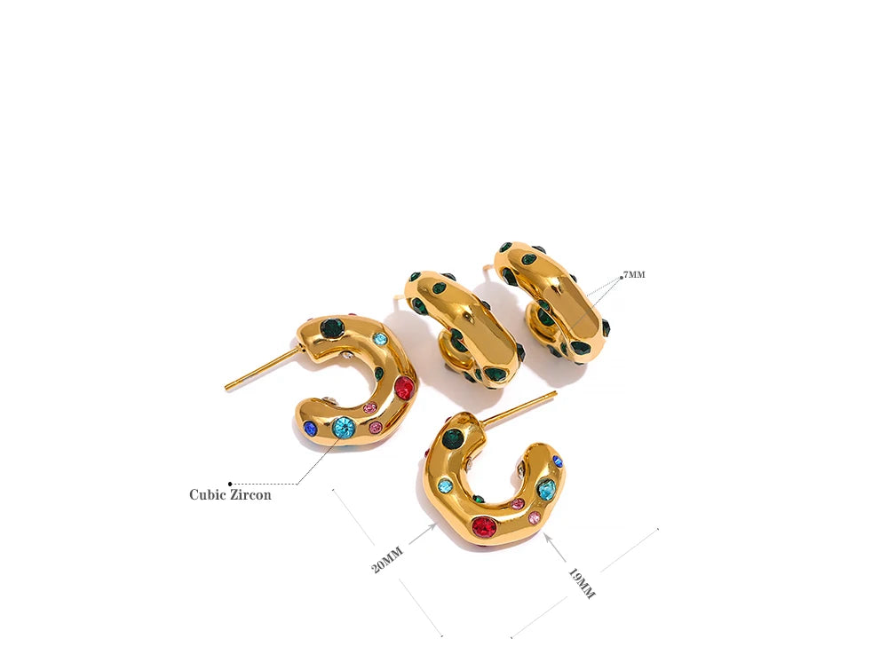 Orecchini a cerchio dorati con zirconi colorati – Acciaio inossidabile impermeabile
