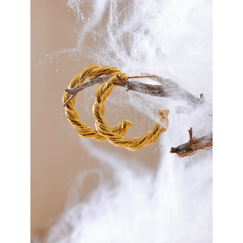 Questi orecchini a cerchio intrecciati sono realizzati in acciaio inossidabile 316L con placcatura PVD di alta qualità, disponibili in due varianti: Gold e Mix (oro con argento).