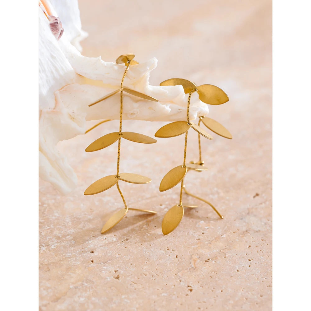 Realizzati in acciaio inossidabile di alta qualità e placcati in oro reale PVD 18K, si distinguono per la loro leggerezza e il movimento fluido delle piccole foglie che catturano la luce ad ogni passo.